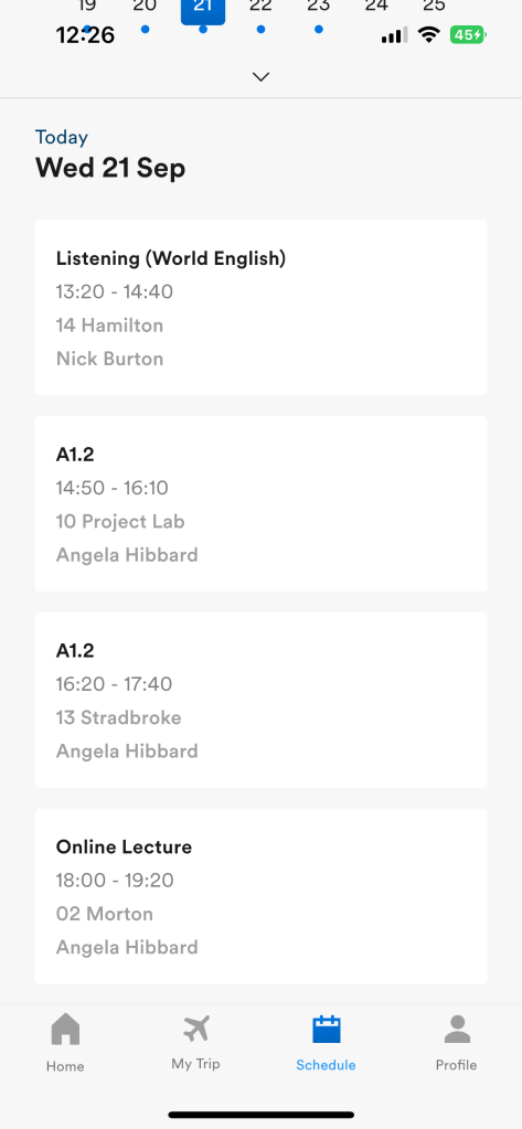 Début des cours : Mes cours commencent à 13h20 et finissent à 19h20.